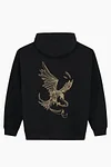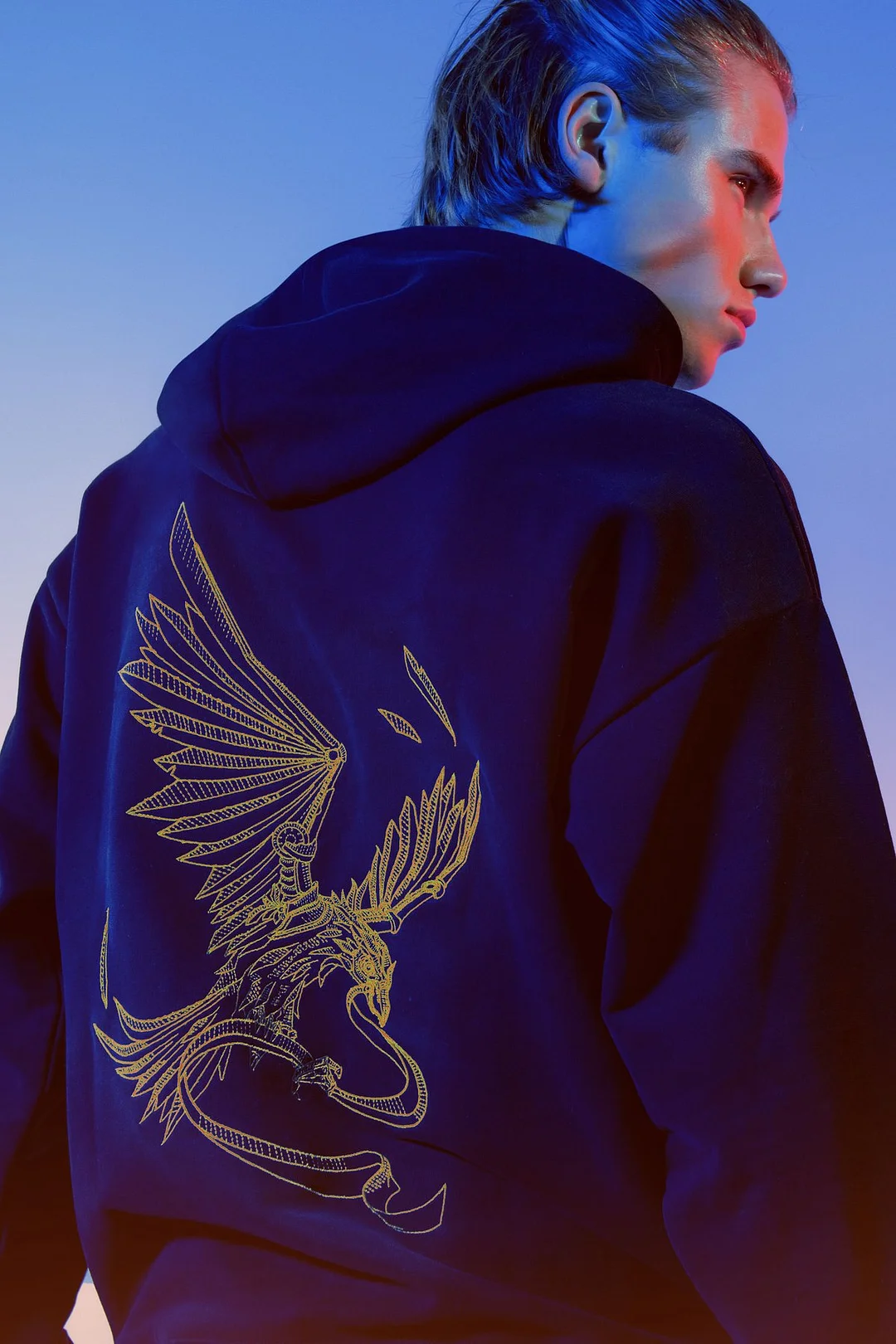 The Premium Amare zipped hoodie shows spirit, power and the pursuit of ultimate freedom. The bold gold embroidery with large Amare lettering shows the mythical Amare eagle, on a mission to unite the People of Tomorrow and connecting souls from all over the world. Ideal for everyday use because of the comfortable & loose fit. Go out and explore cold frontiers with this unique piece!