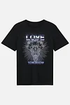 Bring the magical Rosegarden to life with the Metallic Rosie Tee. The large retro photoprint on the black fabric features the gentle dragon of the iconic Rosegarden at night, watching over the People of Tomorrow. The Love Tomorrow lettering reminds us to treasure the beauty of nature with this tribute to one of the most iconic places at Tomorrowland.