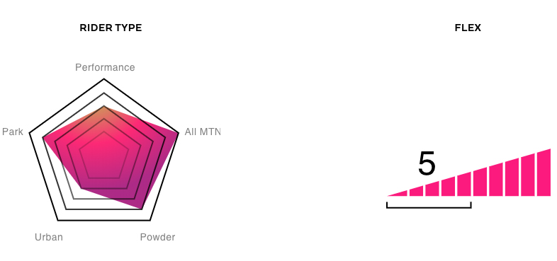 Forgiving when you want it to be, and strong enough to handle sticky situations, the Tomorrowland Snowboard is ideal for casual all-mountain fun as well as side-country madness.