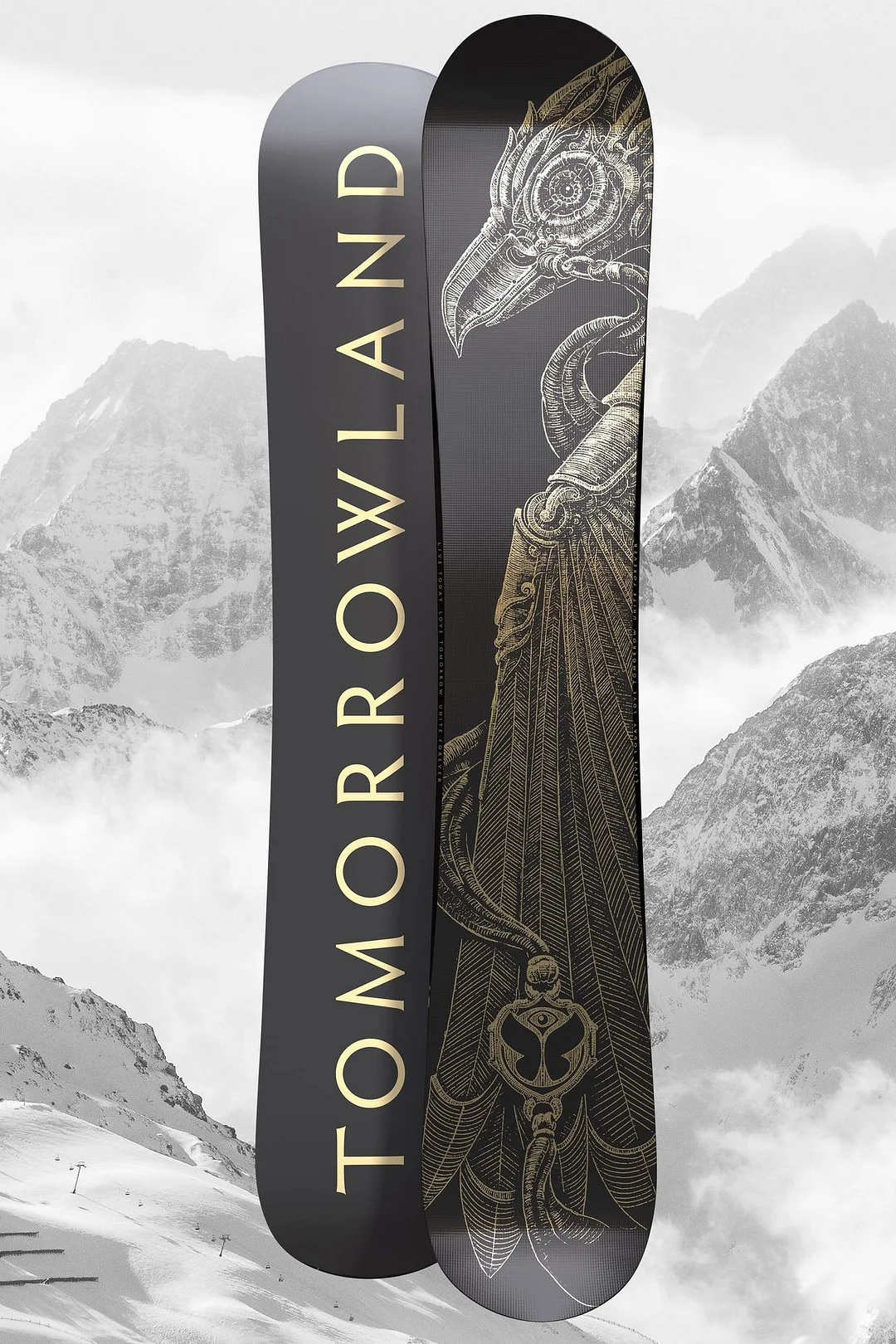 The Tomorrowland Snowboard features a true-twin freestyle shape that has been seamlessly blended with an all-terrain camber profile, built for all-mountain and freeriding.The Top-layer features a unique Amareinspired gold design with Tomorrowland Icon and the die-cut sintered base with Tomorrowland lettering will allow you to crush laps at high speeds.
